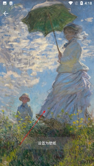 4、进入单幅名画的详情页,可查看作品细节内容,点击页面中的【设置为壁纸】功能,即可将该画作设置为设备壁纸。