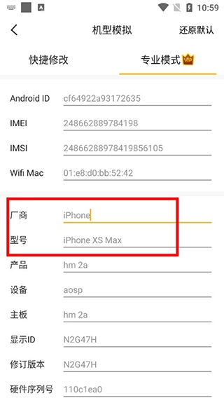 5、来到机型模拟,用户可以设置手机的厂商和型号。