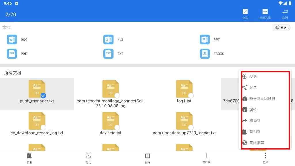 选中文件后,即可使用下方工具栏里对应的批量功能;点击“更多”按钮,就能查看所有可用操作。