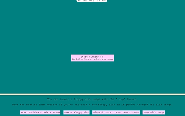 打开应用后,点击「Start Windows 95」即可进入Windows 95的操作界面。尽管如今看来这个图形用户界面或许略显朴素单调,但在1995年时它可是相当先进的。用鼠标操作的方式和Windows 10并无二致,只是点击图标后程序启动会稍慢一些,不像最新的操作系统那样流畅。