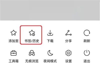 2.在菜单窗口中,选择【书签/历史】。