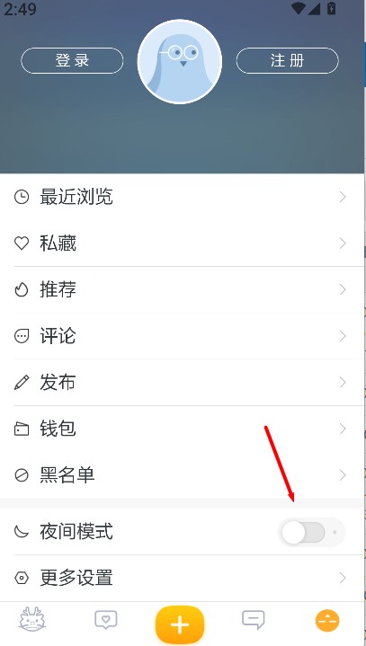 3、在设置选项里找到夜间模式的开关,开启之后界面会切换成深色背景,比较适合夜间阅读时使用。