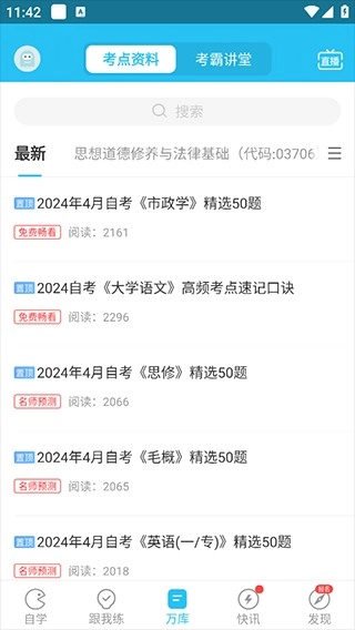 自考万题库为各个不同自考考生提供了丰富的提供,还有诸多的名师直播和精选优课。用户可以根据自己的考试需求,去选择合适的课程和科目进行学习,可以大大提升你的学习效率。