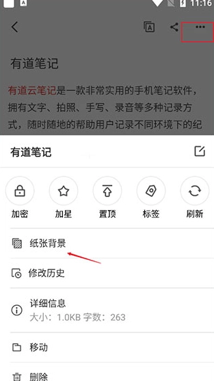4、最后,就是点击右上角的三点,将会在下方弹出如下图所示,点击纸张背景即可。