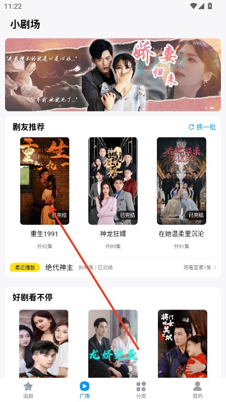 1.在广场上点击一部你喜欢看的短剧。