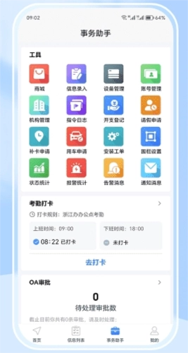 整合OA审批、状态统计等多元办公功能,助力构建高效无纸化办公场景。