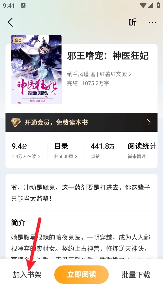 在书籍详情页面点击“听”按钮,就能开启听书体验。
