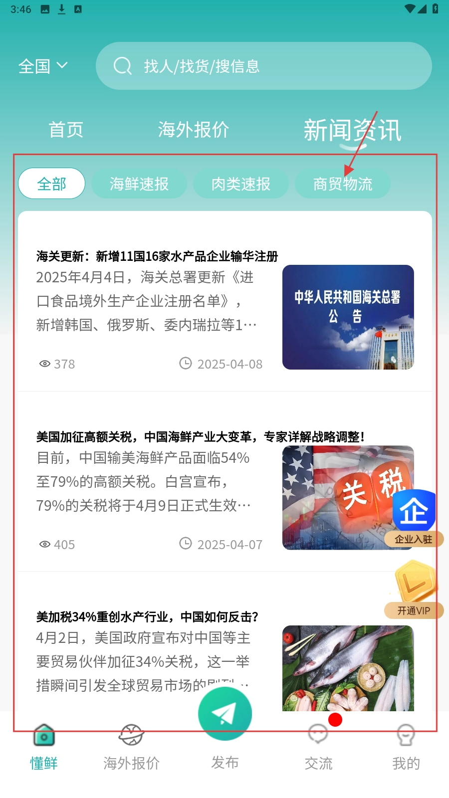 切换【新闻资讯】板块,选择【商贸物流】分类查看行业动态与相关政策。