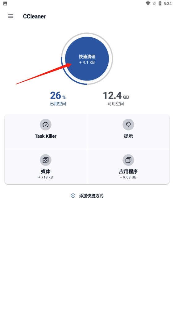 首先打开后,点击【快速清理】;