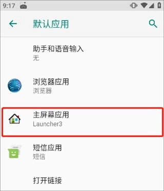 3、进入系统默认应用启动界面,打开“主屏幕应用”;
