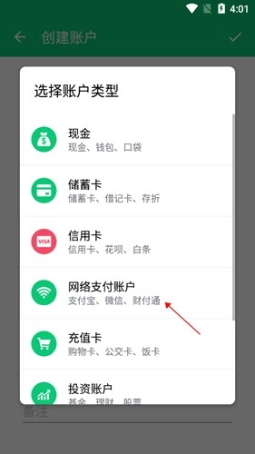 3.点击网络支付账户,输入个人支付宝数据,即可完成导入功能。