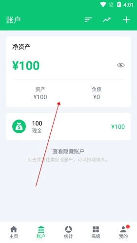 1.首先点击下方的账户按钮,进入所有账户的总览页面。