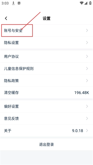 3、在【设置】页面内选择【账号与安全】选项,进入后可开展账号安全相关的管理操作。
