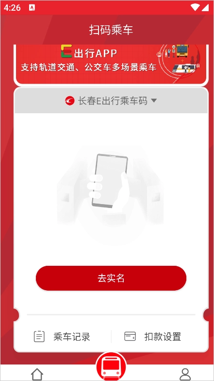 2、来到扫码乘车页面,再点击“去实名”选项;