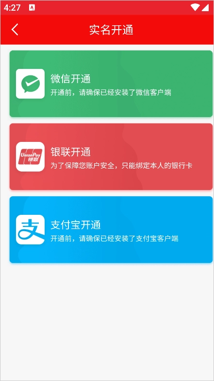 3、进入实名开通页面后,挑选一种免密支付方式并点击进入;