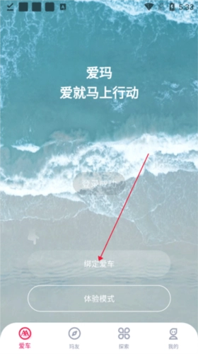 1、打开爱玛智行,绑定爱车按钮,点击进入。