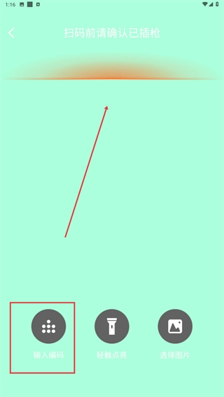 3、若扫码不便,可在该界面选择【输入编码】选项,切换至编码输入模式以启动充电。