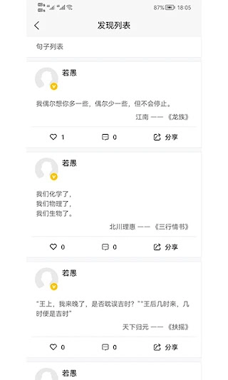 该功能支持社区互动,用户在浏览其他用户公开分享的句子收藏时,能够对内容进行点赞和评论,还可以关注与自己兴趣相投的创作者,从而建立起基于共同审美偏好的社交关联。