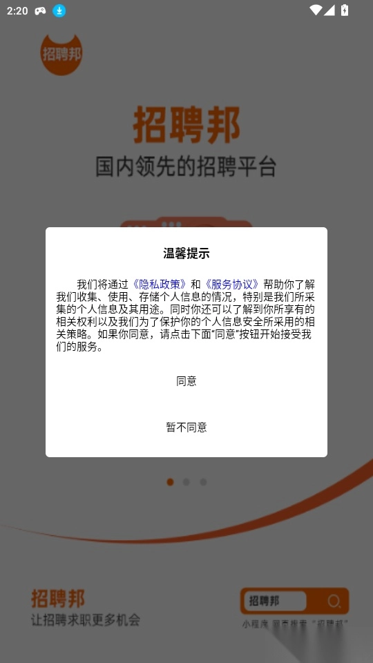 打开软件阅读“温馨提示”点击“同意”进入