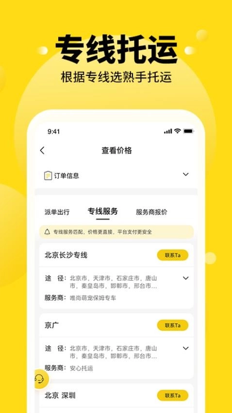 这里还会进行全天候的自动派单,让你可以在线进行派单出行托运。