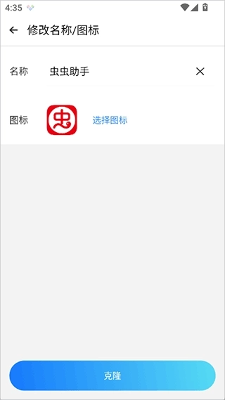 接着挑选手机里的应用程序或者游戏来开展克隆操作,在克隆之前,能够对要克隆的应用或游戏重新设定名称,其图标也可以进行更改。