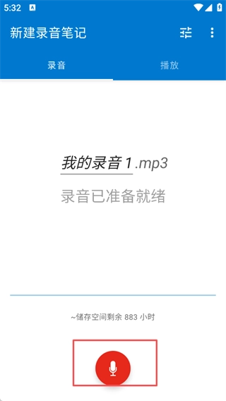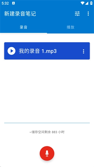 3、录音完成后,文件会显示在列表中,点击文件旁的播放按钮可直接试听,底部麦克风按钮可发起新录音。