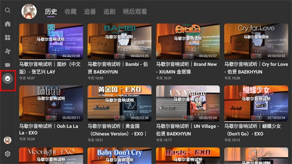 4、点击下图图标,可以看到自己账号的主页,历史记录等都是与B站实时同步
