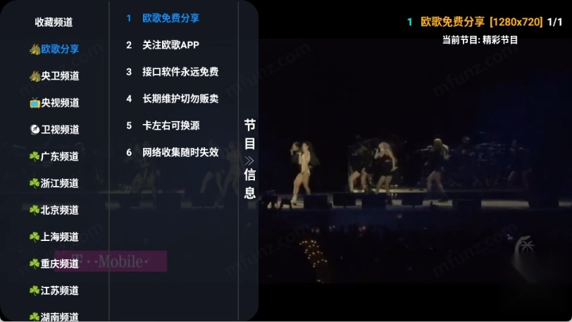 3.首页也可以直播,直接点击屏幕即可调出频道菜单