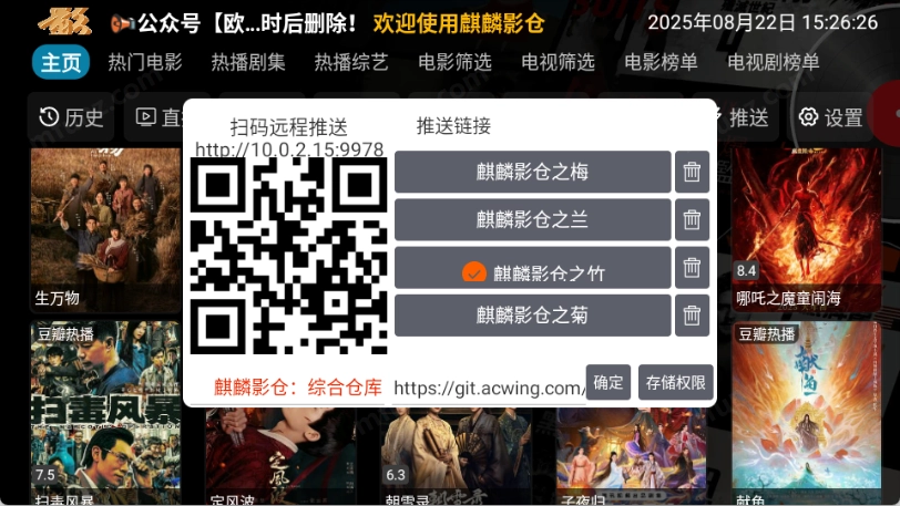 麒麟影仓是一款整合了综合仓库线路播放源的影视盒子,安装完成后无需自行单独配置添加播放源线路,它本身就自带数十个接口数据线路,若有不喜欢的线路,也可在配置中进行删除。麒麟影仓的界面与影视仓等同类型软件相近,同样支持观看直播、切换线路、导入网盘资源等操作。