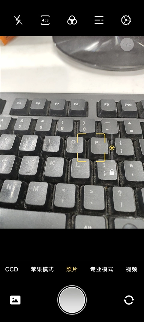 1、打开软件进入首页,这里为用户配备了苹果模式、ccd模式、专业模式等多种拍照模式;