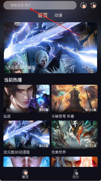 1、在手机上打开八戒动漫,点击首页顶部的搜索框。