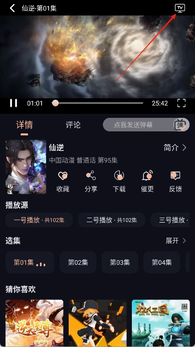 4、在动漫的播放页面点击右上角的TV投屏图标。