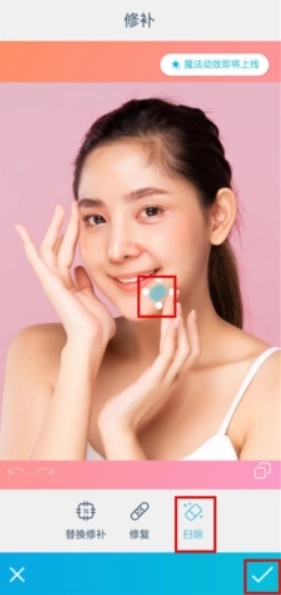 4、选择好区域后选择【扫除】选项,然后点击右下角【打勾】图标即可保存。