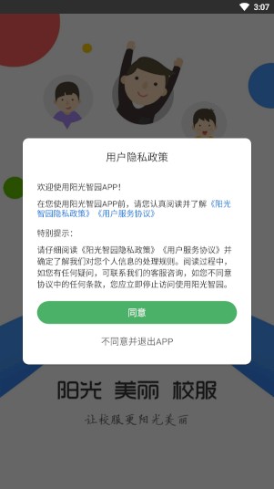 并安装打开阳光智园,阅读协议自行选择是否同意
