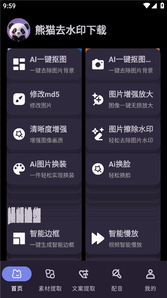 熊猫去水印软件是一款面向创作者的素材处理工具,核心功能涵盖水印去除、文案提取、配音、剪辑、抠图等,其特色在于支持抖音、小红书等3000+热门平台音视频和图片无水印提取,配备网页嗅探功能自动识别可下载素材,通过AI精细抠图精准处理发丝、透明薄纱等细节,提供视频片段裁剪与倍速调整的剪辑功能、文案提取优化服务,以及支持5000字内容、多情感女声(含AI原创、插入停顿功能)的配音模块;使用时打开软件首页选择功能按提示操作即可自动解析,文案提取可快速解析多种格式内容,配音需点击底部功能输入文本、挑选音色后生成试听;亮点是依托分布式解析引擎实现30秒内完成高清素材提取,兼容MP4、MOV等20余种文件格式,从素材获取到创作全流程助力自媒体等场景,且配音支持多情感语调调节,全方位满足创作者从素材获取到内容加工的高效需求。