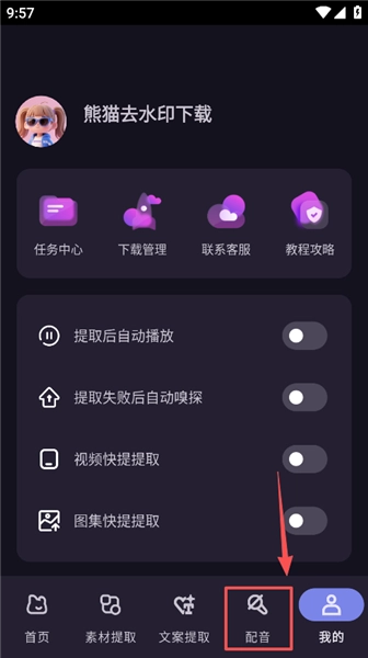 1、打开软件点击底部的配音功能
