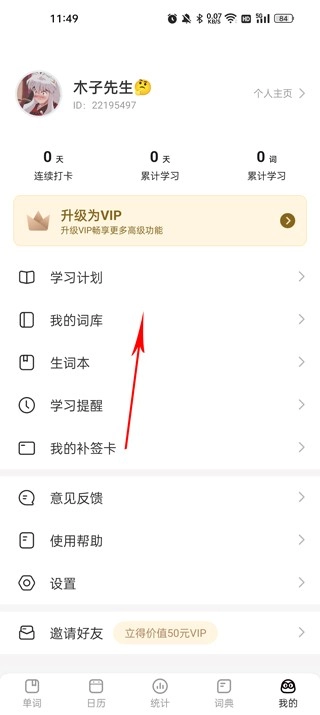 点击其中的我的词库功能;