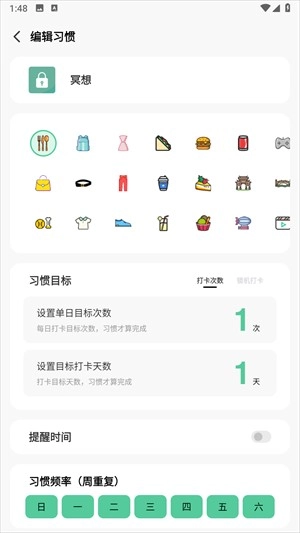 选中习惯后能够直接进行编辑操作,像自定义图标、设置重复频率这类细节都可以调整。