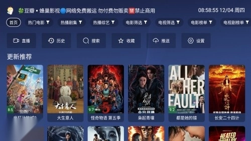 蜂巢影视是专为智能电视盒子打造的影视播放应用,在这里你能获取电影、电视剧、综艺、动漫等点播内容,还能观看央视、卫视及地方台等直播频道。即便错过了直播也无需担心,蜂巢影视TV版支持7天内的节目回看,随时都能补看任意时段的内容。另外,你可以把常用频道添加到收藏夹,下次打开软件时直接从收藏夹进入即可,省去了反复查找的麻烦。