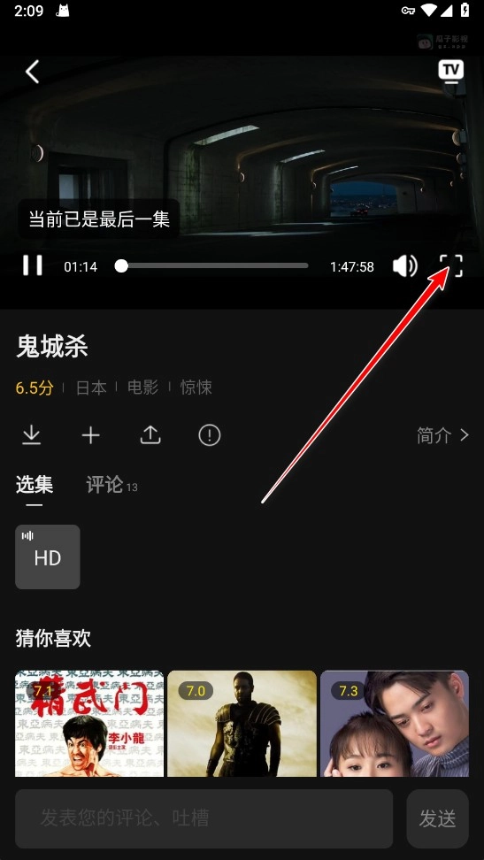 2.在播放界面我们先点击全屏按钮