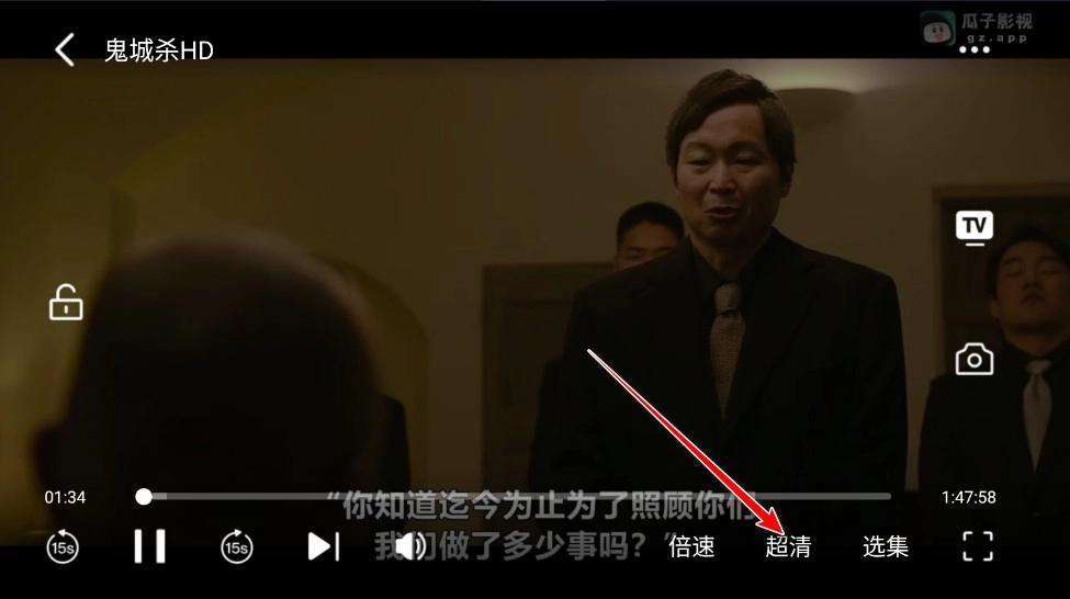 3.在全屏的状态下我们点击清晰度,比如当前我的是超清