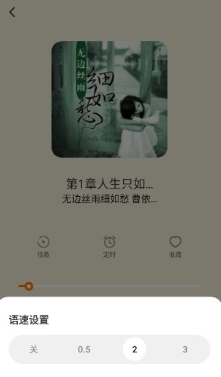 界面具备倍速播放、定时设置、内容收藏等功能,大家可根据自身需求点击对应的功能按钮进行使用。