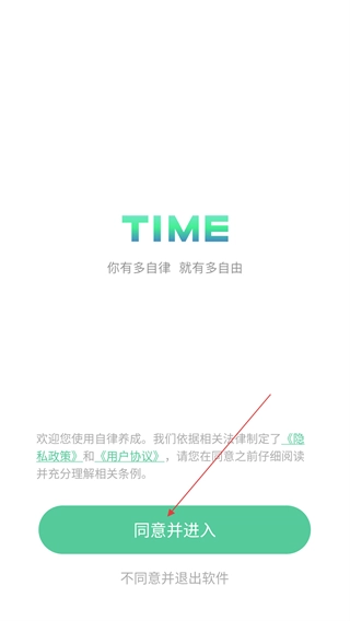 在仔细阅读《隐私政策》与《用户协议》的内容后,点击界面上的【同意并进入】按钮,即可进入应用开始使用。