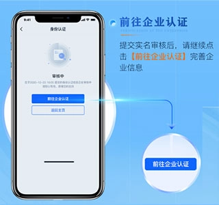 提交实名审核后,请继续点击【前往企业认证】完善企业信息。