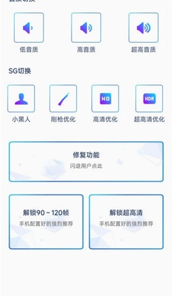 7、在这里你还可以对音质、SG等进行切换,能够解锁超高清、120帧画质;