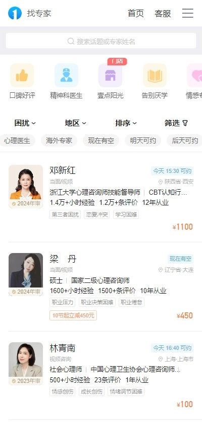 支持关注专家,只需一键就能关注自己感兴趣的心理咨询师,这样下次查找起来会更方便。