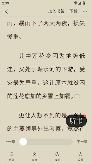 睡前花点时间放松阅读:开启夜间模式,配上柔和的背景,很适合在入睡前安静地读上几章故事。