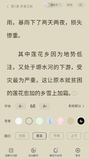 阅读体验支持个性化定制:可自由调节字体大小、切换背景颜色、选择翻页方式等,助力打造契合个人阅读习惯的专属环境。