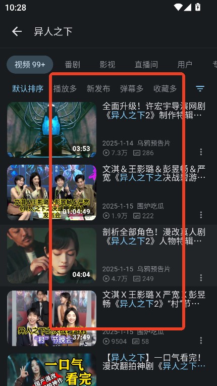 或者直接检索关键词,检索喜欢的番剧,动漫等