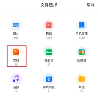 3、然后在文件选择中点击文档,在文档界面中点击要上传的简历;